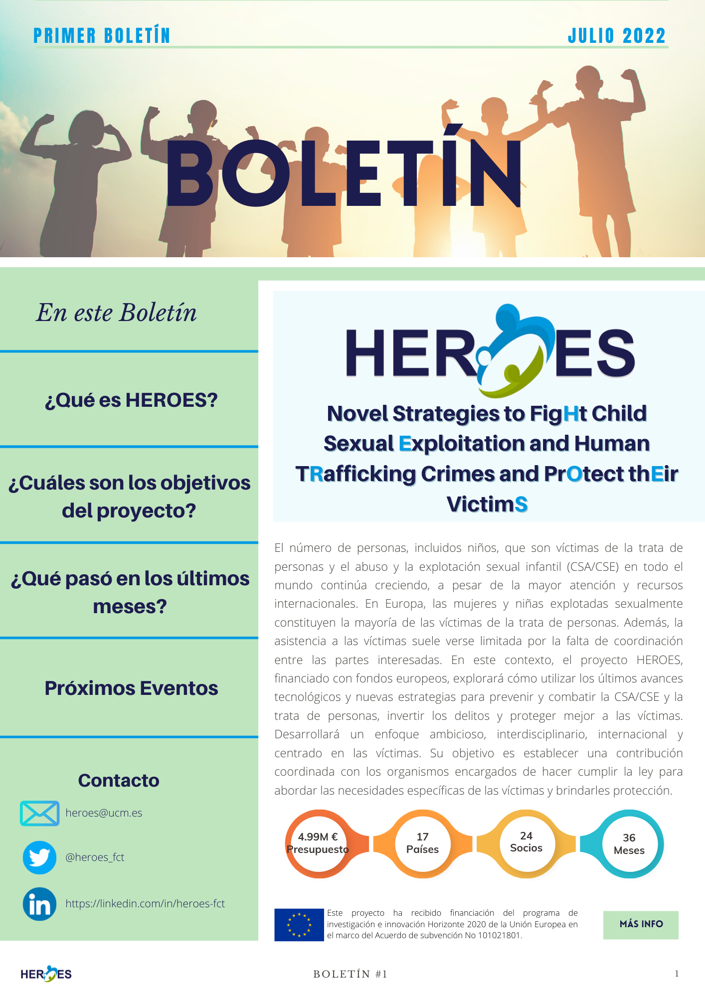 O projeto HEROES desenvolverá ferramentas tecnológicas que cobrem as necessidades mais importantes dos agentes da lei: coleta e análise de dados, ao mesmo tempo em que se observam os desafios técnicos, éticos e legais, próprios do combate aos crimes de THB e AESI.